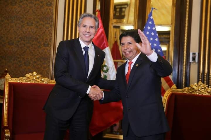 El presidente Pedro Castillo Terrones sostuvo una reunión de trabajo con el secretario de Estado de los Estados Unidos, Antony Blinken, quien visita nuestro país para discutir temas de agenda bilateral, en el marco de la 52º Asamblea General de la OEA en Lima.