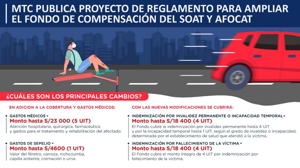 El Ministerio de Transportes y Comunicaciones (MTC) mejor贸 la cobertura del Fondo de Compensaci贸n del SOAT (Seguro Obligatorio de Accidentes de Tr谩nsito) y del CAT (Certificado contra Accidentes de Tr谩nsito) a trav茅s de la modificaci贸n del Reglamento del Fondo de Compensaci贸n del SOAT y CAT.