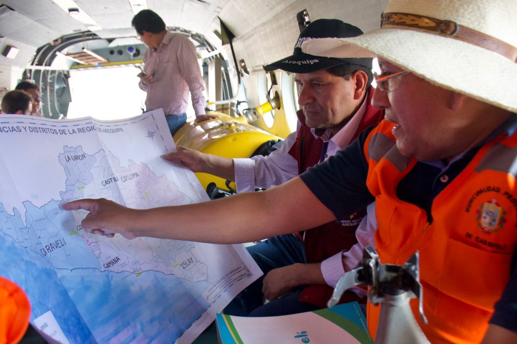 Los daños ocasionados por las lluvias en la provincia de Caravelí fueron inspeccionados por el Dr. Rohel Sánchez Sánchez, Gobernador Regional de Arequipa, el alcalde de la provincia Roberto Soto y Aaron Maldonado, consejero regional, en un vuelo de apoyo solicitado por la autoridad local.