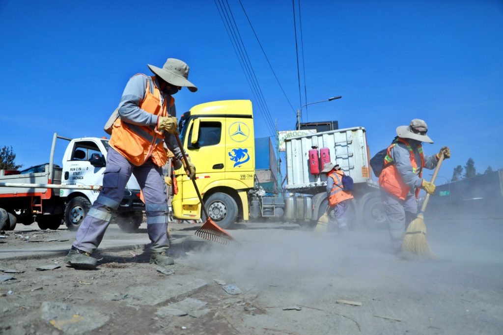 La jornada de limpieza inició a las 6:00 horas, con el apoyo de 30 trabajadores de limpieza pública de la comuna provincial, quienes se encargaron del barrido y recojo de escombros del tramo de la variante que compete hasta el puente San Isidro.