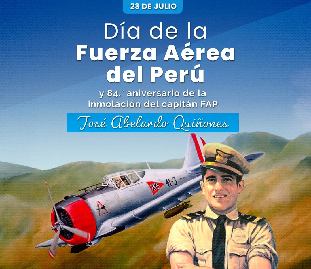 Este 23 de julio rendimos homenaje a nuestra gloriosa Fuerza Aรฉrea del Perรบ en su 84.ยฐ aniversario y recordamos con orgullo al capitรกn FAP Josรฉ Abelardo Quiรฑones, hรฉroe nacional que entregรณ su vida por la patria, donde se inmolรณ en una misiรณn aรฉrea durante la guerra peruano-ecuatoriana de 1941, y su acto es reconocido como un sรญmbolo de valentรญa y sacrificio por la patria.ย La FAP celebra este dรญa con diversas actividades y actos conmemorativos.ย