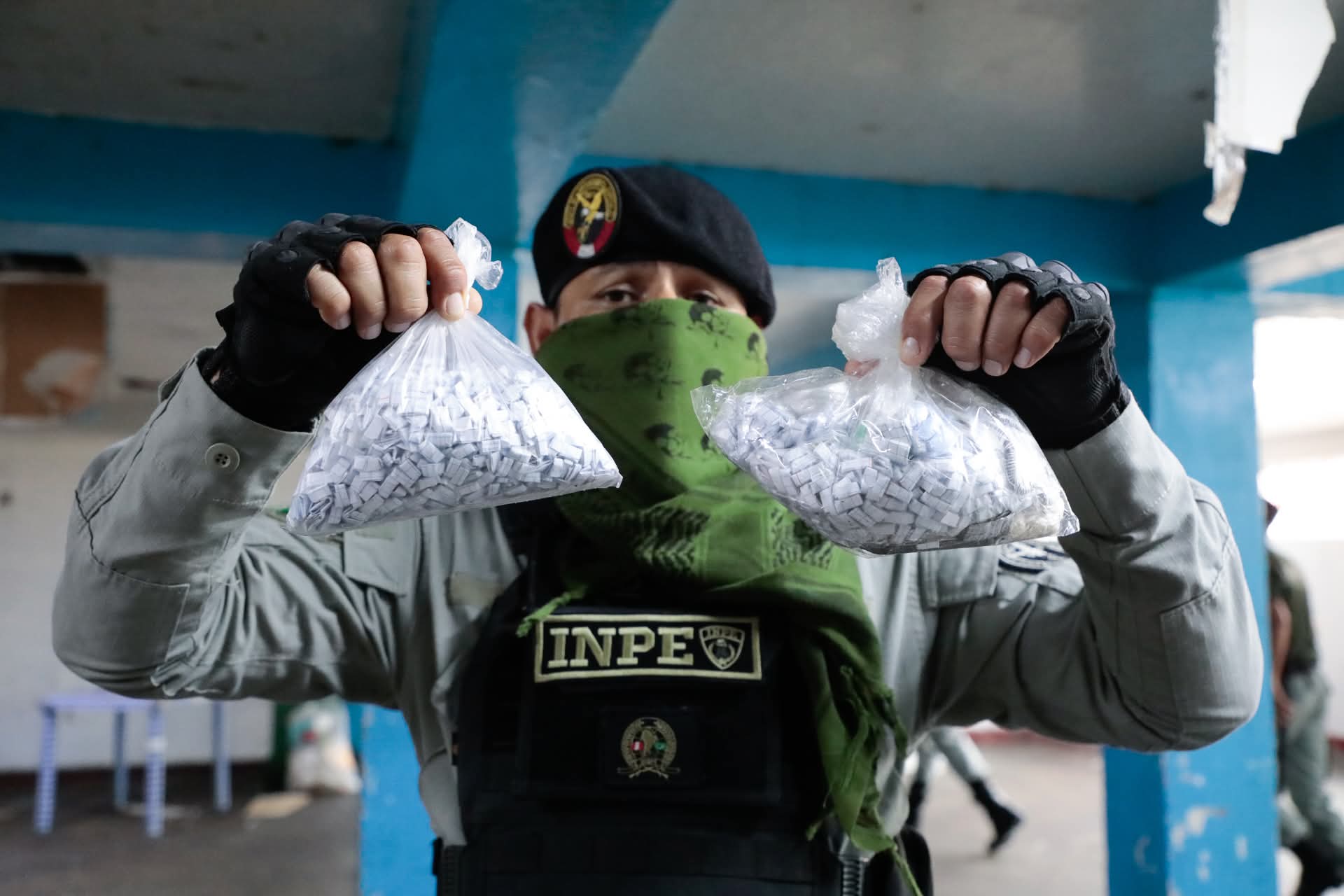 Trujillo. Durante la intervenciรณn, agentes del Grupo de Operaciones Especiales (GOES) del INPE incautaron droga, celulares, chips, cargadores y manuscritos con nรบmeros telefรณnicos que podrรญan ser utilizados para cometer delitos como extorsiรณn y secuestro.